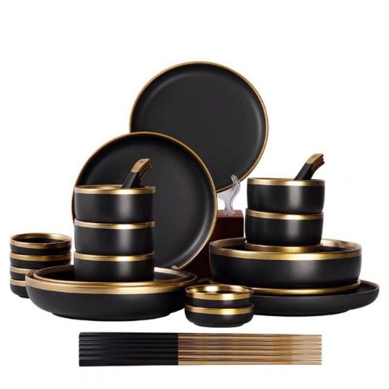 bộ chén bát đĩa ăn đen lì cao cấp free ship