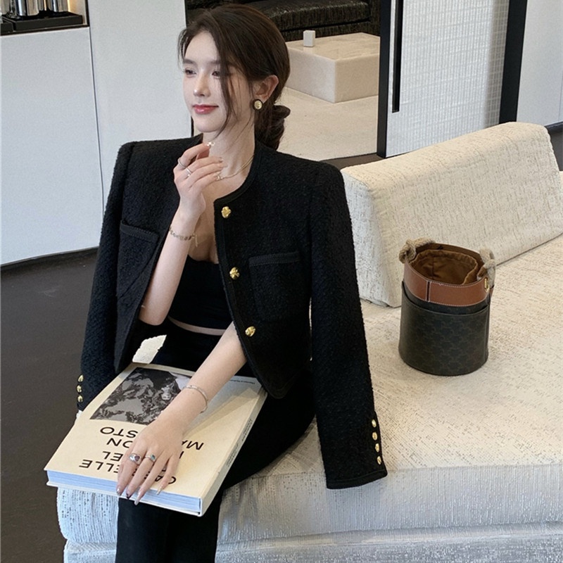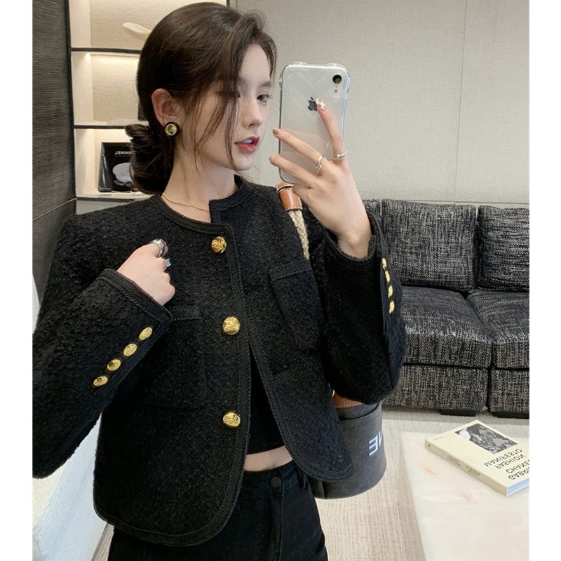 Áo khoác len dệt kim dáng rộng màu đen phong cách Retro free ship