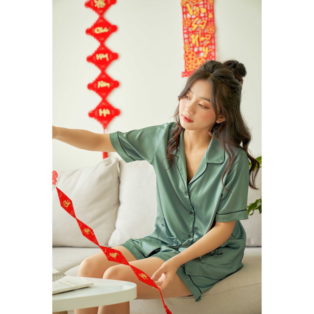 Bộ Pijama Lụa Cao Cấp VIBES Bean Silk Py Set free ship